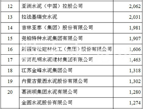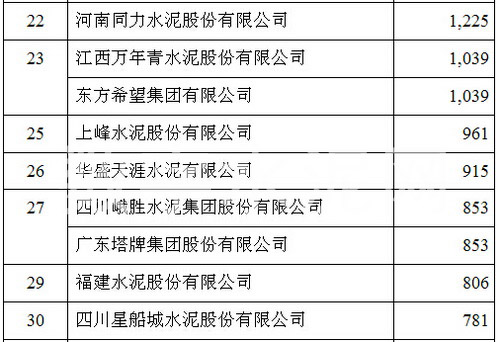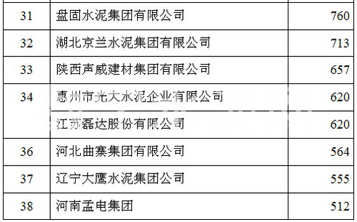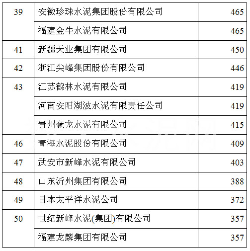 中國水泥協會公布2015年全國水泥熟料產能前50強企業排名