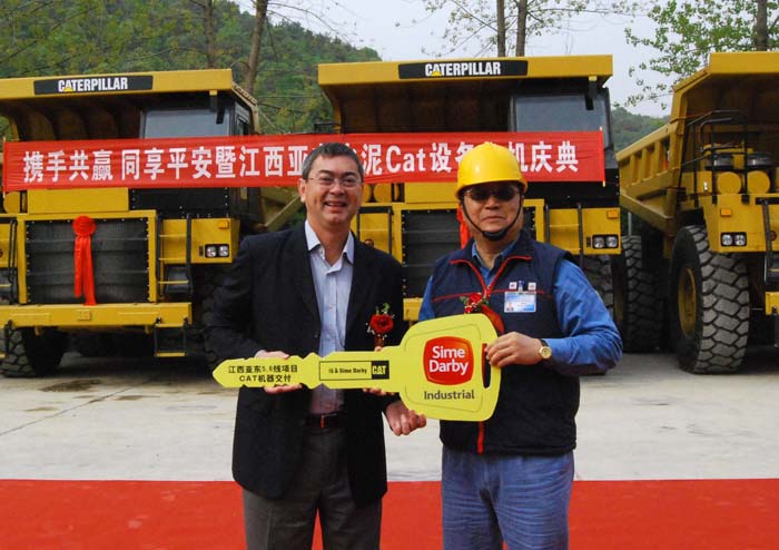 亞泥(中國)下轄之江西亞東公司五、六線CAT設(shè)備交機儀式,4月9日于礦山隆重舉行,CAT大中華區(qū)公司總經(jīng)理、江西、廣東等七省總代理信昌公司總經(jīng)理等人均到場參加,并由信昌公司戴偉信總經(jīng)理向亞洲水泥(中國)控股公司執(zhí)行長吳中立致贈CAT設(shè)備模擬鑰匙,江西亞東張振昆總經(jīng)理、郭醒民首席副總和中控采購部王亮石協(xié)理等高階主管也蒞臨現(xiàn)場一同見證。交機后,12輛773E自卸卡車、5輛988H輪式裝載機、1輛374DL挖掘機,計18輛嶄新的CAT重裝備即將投入每年新增的660萬噸石灰石生產(chǎn)行列,也使江西亞東水泥年產(chǎn)量在2014年將突破1400萬噸。