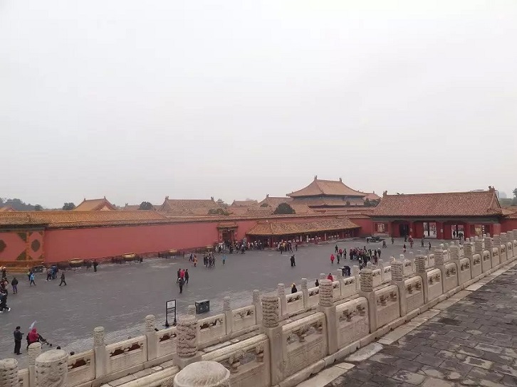 第三天的行程開始的比較早。為了占據(jù)觀看升旗的最佳位置,我們一行相約5點(diǎn)出發(fā)。觀看莊嚴(yán)的升旗儀式后,便馬不停蹄的趕去毛澤東紀(jì)念堂排隊(duì),瞻仰中國人民的偉大領(lǐng)袖毛主席。隨后便穿過金水橋,從午門進(jìn)入宏偉壯麗的紫禁城。故宮宮殿是沿著一條南北向中軸線排列,三大殿、后三宮、御花園都位于這條中軸線上,并向兩旁展開,南北取直,左右對(duì)稱,東西六宮都自成一體,各有宮門宮墻,相對(duì)排列,秩序井然。走進(jìn)紫禁城,立馬被氣魄宏偉,規(guī)劃嚴(yán)整,雄渾壯觀的宮殿與廣場(chǎng)所驚嘆。其中太和殿坐落在紫禁城對(duì)角線的中心,四角上各有十只吉祥瑞獸,生動(dòng)形象,栩栩如生,象征封建政權(quán)至高無上。御花園里有歲寒不凋的蒼松翠柏,有秀石迭砌的玲瓏假山,樓、閣、亭、榭掩映其間,幽美而恬靜。走進(jìn)這座宮城,手撫著漢白玉,仰望著宮殿,一磚一瓦,一石一木都似乎在訴說著這座宮城的故事,那早已遠(yuǎn)去的皇家遺韻。