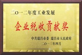 2013年4月23日,瑞昌市2012年度全市工業(yè)、開放型經(jīng)濟(jì)和非工企業(yè)先進(jìn)單位表彰大會隆重召開,江西亞東獲頒『工業(yè)發(fā)展企業(yè)稅收貢獻(xiàn)獎』和『納稅過億元企業(yè)』兩項(xiàng)大獎,以及獎勵金人民幣49萬元。